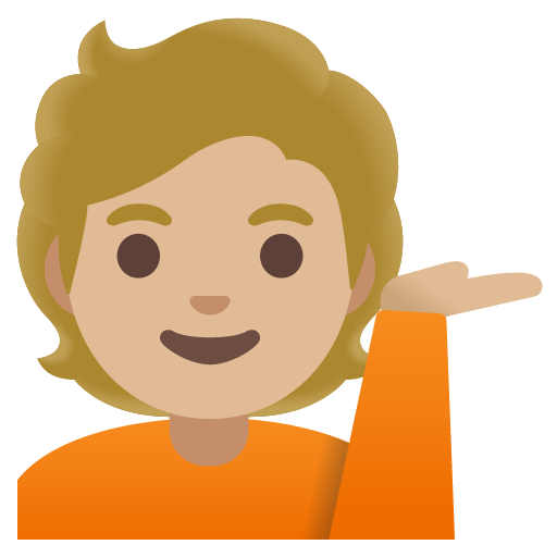 You can add the person tipping hand: medium-light skin tone emoji to your website in a few ways. The first way is by using the unicode character, the emoji itself. This has the advantage of rendering immediately and it doesn't require any additional network requests. However, emoji characters don't always scale well and they are inconsistent across platforms.