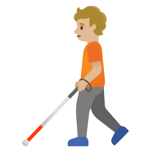 The above meaning was generated by artificial intelligence. It may contain errors or inaccuracies, or be entirely untrue.Copy the person with white cane: medium-light skin tone emoji