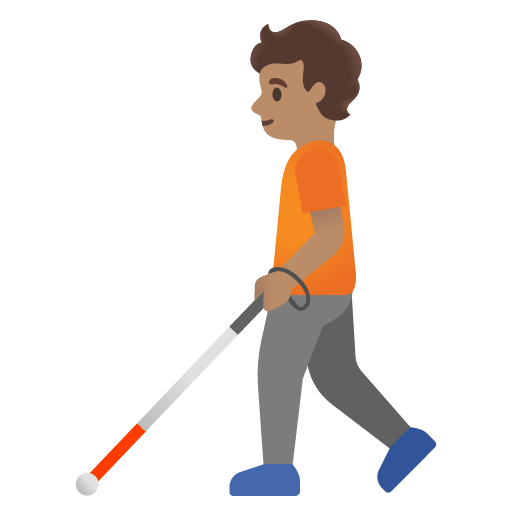 The above meaning was generated by artificial intelligence. It may contain errors or inaccuracies, or be entirely untrue.Copy the person with white cane: medium skin tone emoji