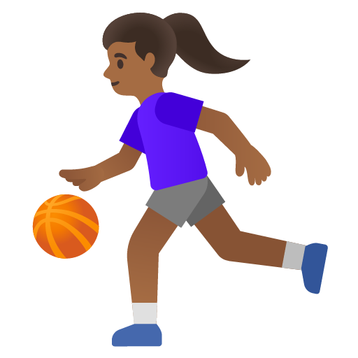 The woman bouncing ball: medium-dark skin tone emoji represents a woman of medium-dark skin tone bouncing a ball.