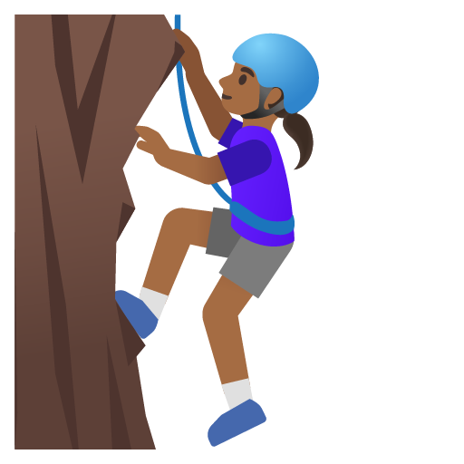 The woman climbing: medium-dark skin tone emoji represents a female rock climber with medium-dark skin tone.