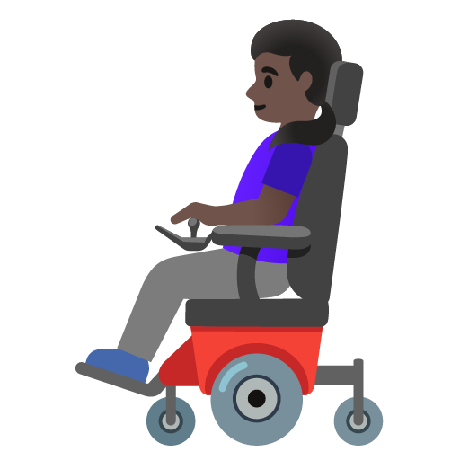 Description from EmojipediaWhat does the woman in motorized wheelchair: dark skin tone emoji mean?