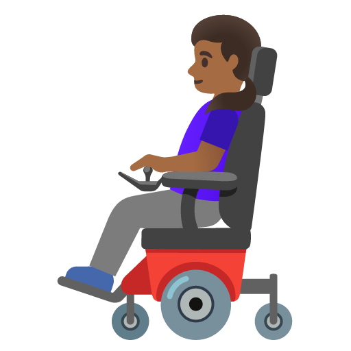 The woman in motorized wheelchair: medium-dark skin tone emoji represents diversity and inclusion for individuals with disabilities.