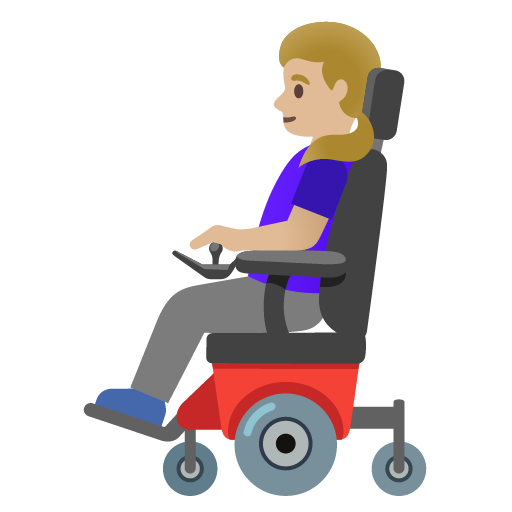 The above meaning was generated by artificial intelligence. It may contain errors or inaccuracies, or be entirely untrue.Copy the woman in motorized wheelchair: medium-light skin tone emoji