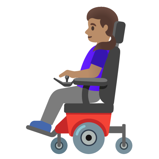 The woman in motorized wheelchair: medium skin tone emoji represents inclusivity and representation of people with disabilities.