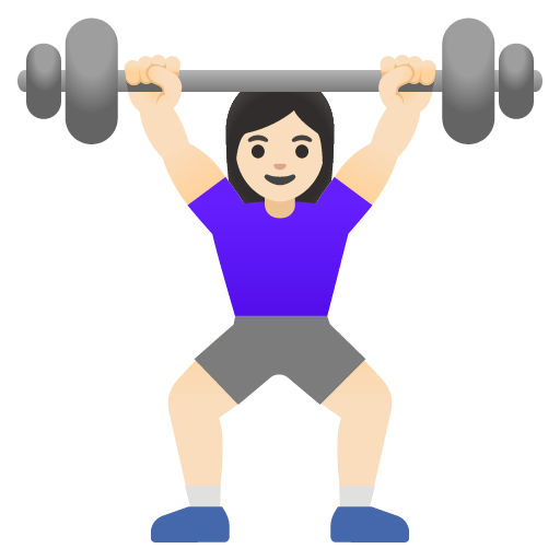 The woman lifting weights: light skin tone emoji represents strength and exercise.