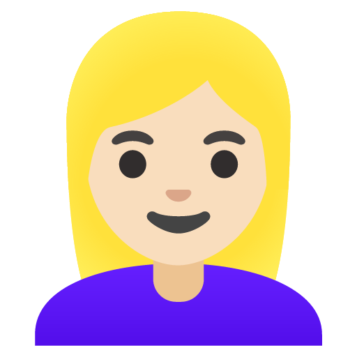 It represents a woman with light skin tone and blond hair.
