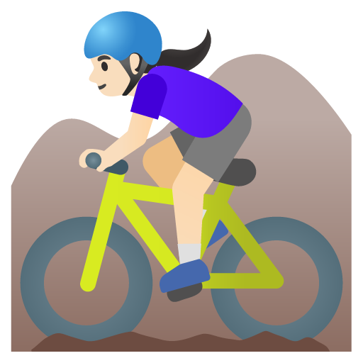 The emoji represents a woman with light skin tone riding a mountain bike.