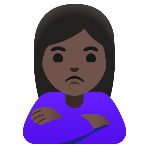 The above meaning was generated by artificial intelligence. It may contain errors or inaccuracies, or be entirely untrue.Copy the woman pouting: dark skin tone emoji