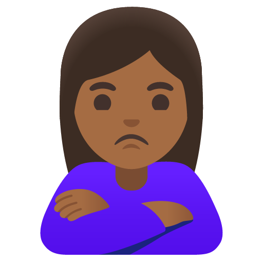 The above meaning was generated by artificial intelligence. It may contain errors or inaccuracies, or be entirely untrue.Copy the woman pouting: medium-dark skin tone emoji