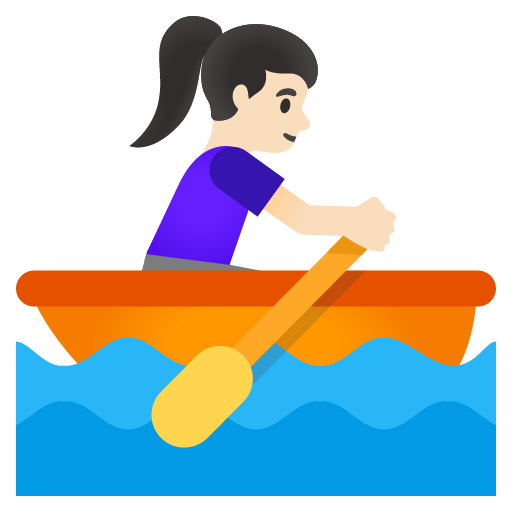 Download the woman rowing boat: light skin tone emoji in PNG and SVG formats below, or copy the emoji to your clipboard.