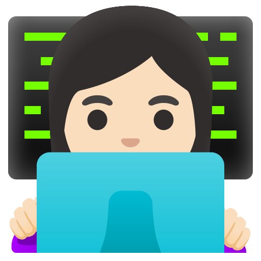 You can add the woman technologist: light skin tone emoji to your website in a few ways. The first way is by using the unicode character, the emoji itself. This has the advantage of rendering immediately and it doesn't require any additional network requests. However, emoji characters don't always scale well and they are inconsistent across platforms.