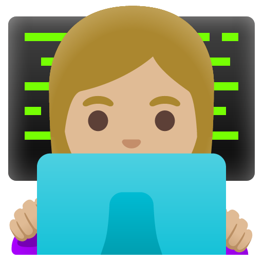 You can add the woman technologist: medium-light skin tone emoji to your website in a few ways. The first way is by using the unicode character, the emoji itself. This has the advantage of rendering immediately and it doesn't require any additional network requests. However, emoji characters don't always scale well and they are inconsistent across platforms.