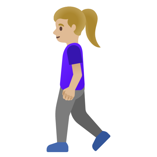 Download the woman walking: medium-light skin tone emoji in PNG and SVG formats below, or copy the emoji to your clipboard.