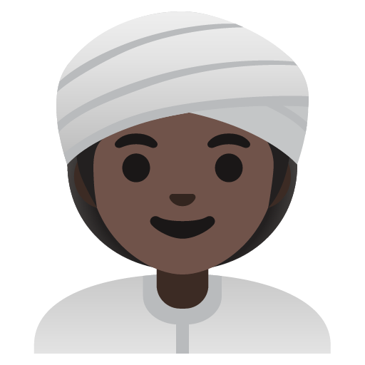 The above meaning was generated by artificial intelligence. It may contain errors or inaccuracies, or be entirely untrue.Copy the woman wearing turban: dark skin tone emoji
