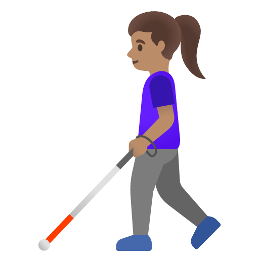 The above meaning was generated by artificial intelligence. It may contain errors or inaccuracies, or be entirely untrue.Copy the woman with white cane: medium skin tone emoji