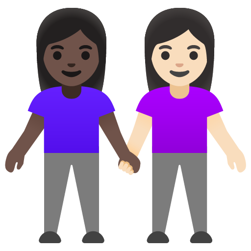 The above meaning was generated by artificial intelligence. It may contain errors or inaccuracies, or be entirely untrue.Copy the women holding hands: dark skin tone, light skin tone emoji