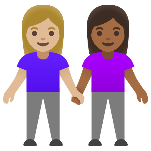 This emoji represents two women of different skin tones holding hands in solidarity or friendship.