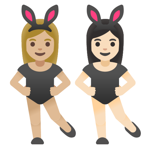 You can add the women with bunny ears: medium-light skin tone, light skin tone emoji to your website in a few ways. The first way is by using the unicode character, the emoji itself. This has the advantage of rendering immediately and it doesn't require any additional network requests. However, emoji characters don't always scale well and they are inconsistent across platforms.