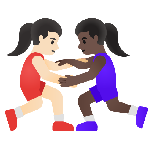 The women wrestling: light skin tone, dark skin tone emoji represents women of different skin tones engaged in wrestling or a competitive sport.
