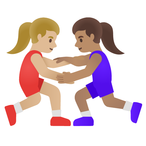 The above meaning was generated by artificial intelligence. It may contain errors or inaccuracies, or be entirely untrue.Copy the women wrestling: medium-light skin tone, medium skin tone emoji