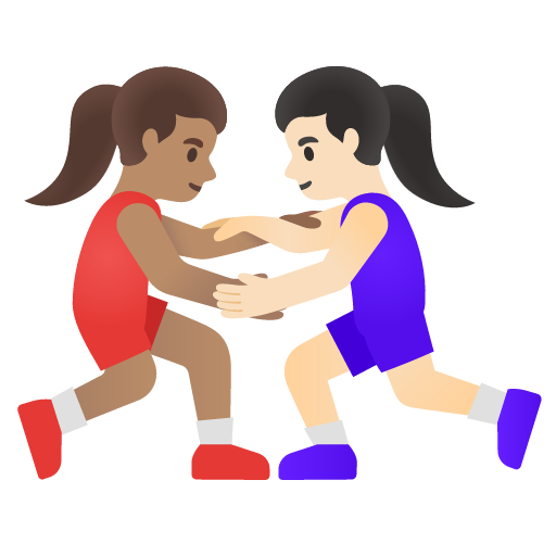 The above meaning was generated by artificial intelligence. It may contain errors or inaccuracies, or be entirely untrue.Copy the women wrestling: medium skin tone, light skin tone emoji