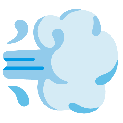 A cartoon-styled gust of air. Depicted as a small, gray cloud with motion lines, rushing to the left. Resembles briffits, a stylized cloud of dust used in comics and animation to indicate someone or something has dashed away (e.g., leaving someone in the dust). May be used to represent speed, smoking, and various types of wind, blown or broken. May precede other emoji, such as ๐Runner or ๐ Automobile, to indicate something is fast or fleeing: ๐๐จ, ๐๐จ. Not to be confused ๐ฌ๏ธ Wind Face, though their applications may overlap.