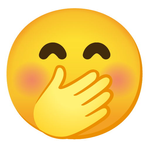 You can add the face with hand over mouth emoji to your website in a few ways. The first way is by using the unicode character, the emoji itself. This has the advantage of rendering immediately and it doesn't require any additional network requests. However, emoji characters don't always scale well and they are inconsistent across platforms.