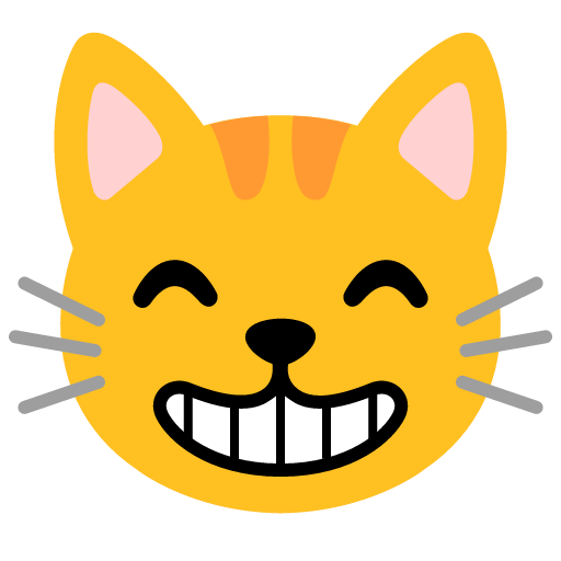 Download the grinning cat with smiling eyes emoji in PNG and SVG formats below, or copy the emoji to your clipboard.