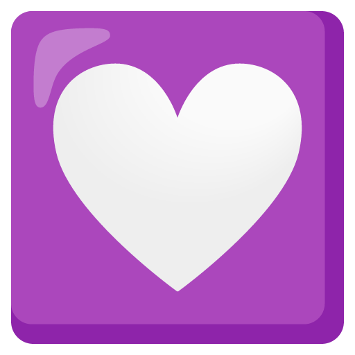 A decorative heart that generally displays as a white heart-shaped cutout in a pink or purple roundrect. Google previously displayed a pink heart with yellow dots around it, Samsung’s was a pink patterned heart, and Microsoft’s had corner stitches.
