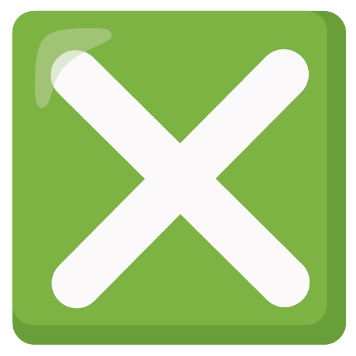 A cross mark that displays with a white outlined appearance. Shows on most platforms with a bright green rounded rectangle or circle surrounding it.