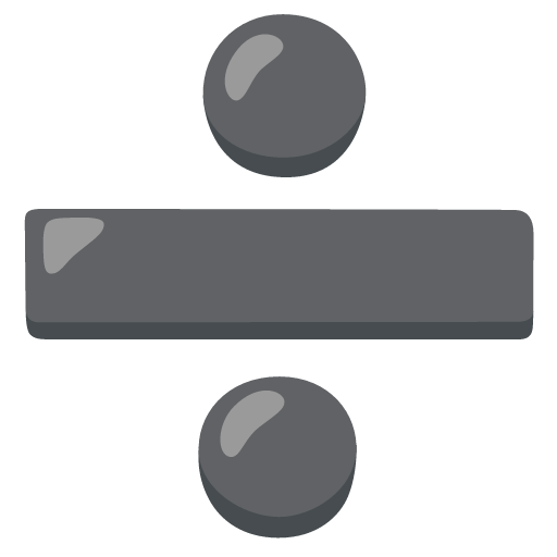 Download the divide emoji in PNG and SVG formats below, or copy the emoji to your clipboard.