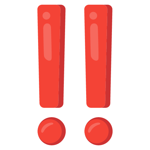 Two large red exclamation mark (!) symbols placed side-by-side (!!).