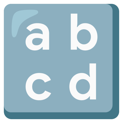 A symbol showing the lowercase letters a, b, c and d. Intended to be used on a software keyboard, or other input screen to toggle lowercase letter input.