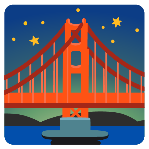 Download the bridge at night emoji in PNG and SVG formats below, or copy the emoji to your clipboard.