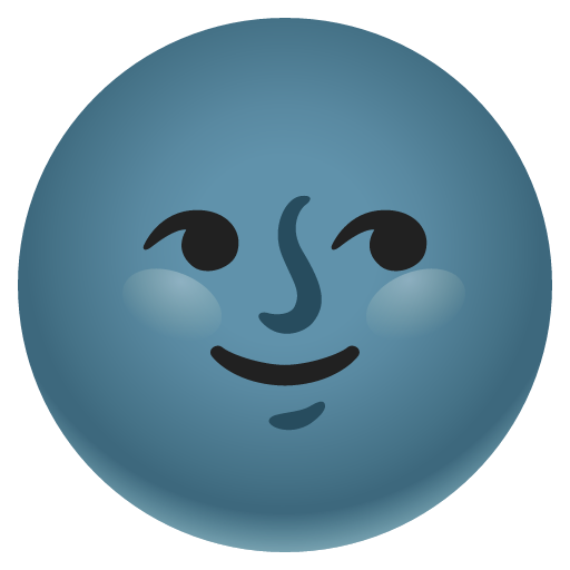 A new moon with a smiling face, as the Man in the Moon. Generally depicts the moon as a dark disc with a slightly smiling human face and nose. See also 🌑 New Moon. May be used to represent the moon more generally. Popularly perceived as creepy, used to throw shade (express disapproval), or convey various suggestive or ironic sentiments. Apple and WhatsApp’s eyes are looking left, as if giving the side-eye. Samsung and Facebook’s faces are looking straight ahead. Google’s facial expression resembles 😏 Smirking Face, Twitter’s 🙂 Slightly Smiling Face. Google’s face previously evoked Lenny Face, Microsoft’s eyes appeared closed, and Facebook’s face was a simple smiley.