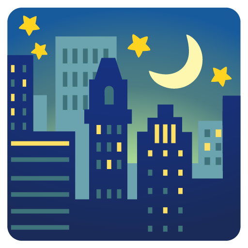 A night sky with stars, depicted on major platforms as a cityscape at night.