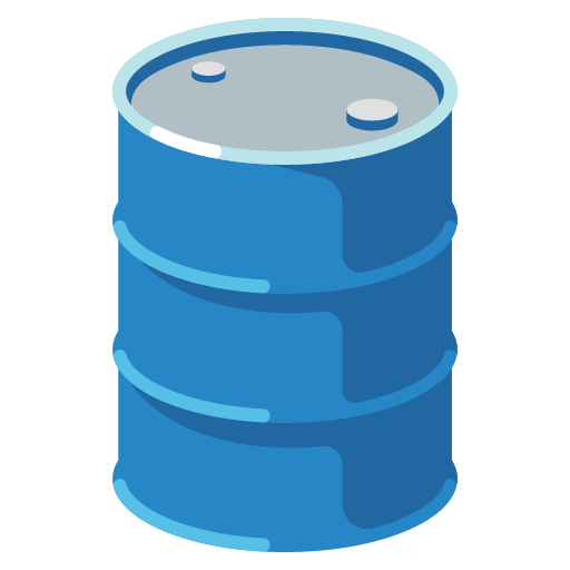A barrel for transporting bulk liquids, such as oil. Generally depicted as a red or blue metal drum with holes or a stopper on its lid. Commonly used for various content concerning petroleum or hazardous waste. Google’s design previously displayed a yellow oil drop symbol, while Samsung's design previously featured a yellow hazard sign.