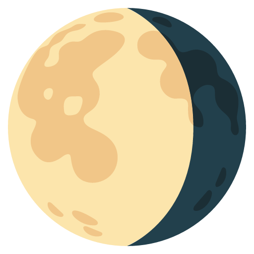 A waning gibbous moon (appearing more than half full but getting smaller), the sixth of the eight phases of the moon. Depicts the moon as a cratered disc, mostly illuminated in gold or silver, but with its right side a dark crescent. May be used to represent the moon more generally, nighttime, outer space, and astronomy. May also be used to convey enchanting or eerie feelings. Not to be confused with 🌔 Waxing Gibbous Moon, though their applications may overlap. Used as part of the Moon Emoji Creep meme. Samsung’s design once resembled a full moon with stars and previously displayed as a waning gibbous moon in a night sky with stars.