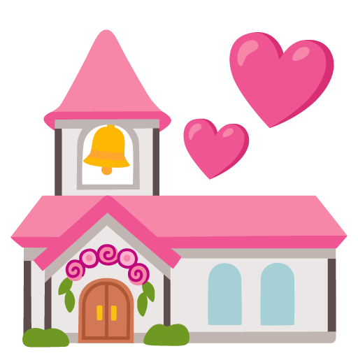 An emoji to depict a wedding, displayed by most vendors as a Christian church and love hearts. Some platforms display a cross or bell on the building.